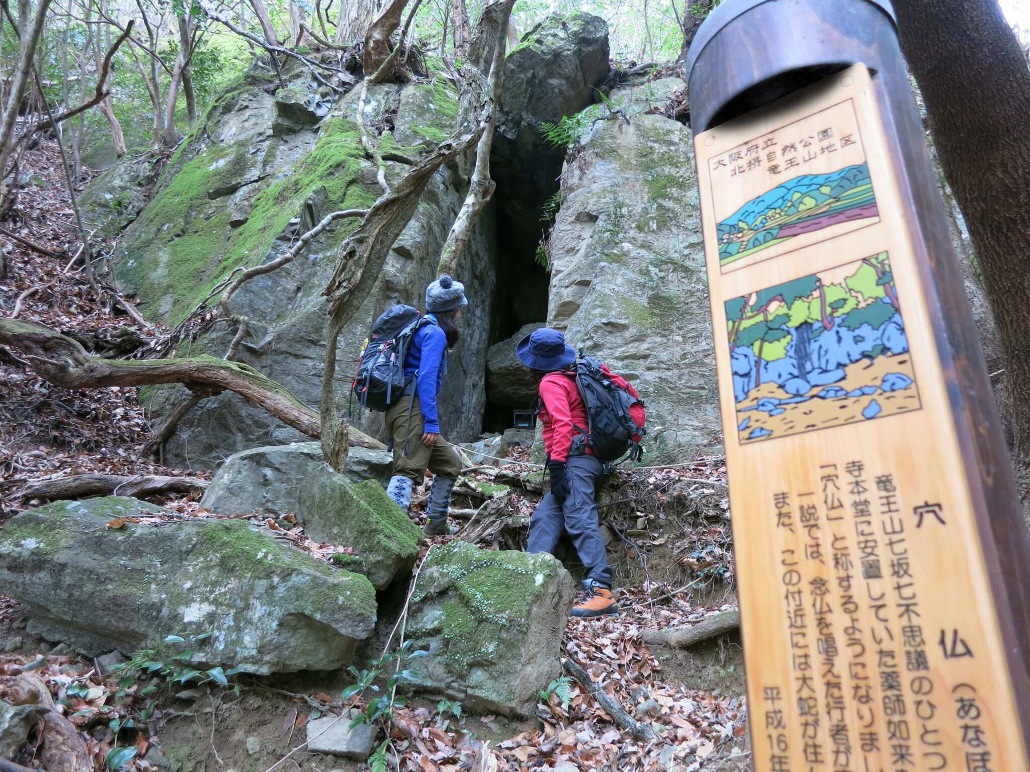 - 8:45変電所前-(武士道)-10:30竜仙滝-10:50車坂大橋-(深山水路遊歩道)-11:30北広場-負嫁岩・穴岩-12:45竜王山-13:30竜王山荘