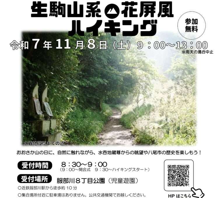 その一環として、11月8日(土)⽣駒⼭系花屏⾵ハイキングが開催されますのでご案内いたします。
