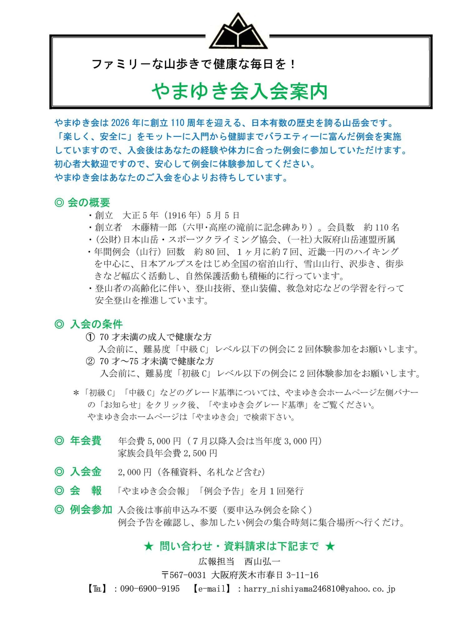 〈やまゆき会〉会員募集のお知らせ